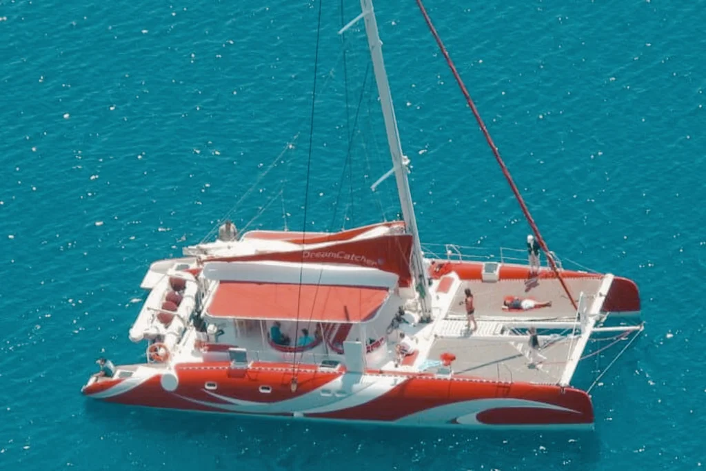Dream Catcher follows the company’s tradition of exceptional customer service and attention to detail. It has been featured on several TV Networks included “The Kardashians” (Entertainment TV 2013) and rated #1 boat tour/excursion on TripAdvisor. The waves on the side of Dream Catcher differentiate this beautiful red catamaran as the original, unique, and most recognized tour/company on the Island. We offer guests more than just a boat ride.